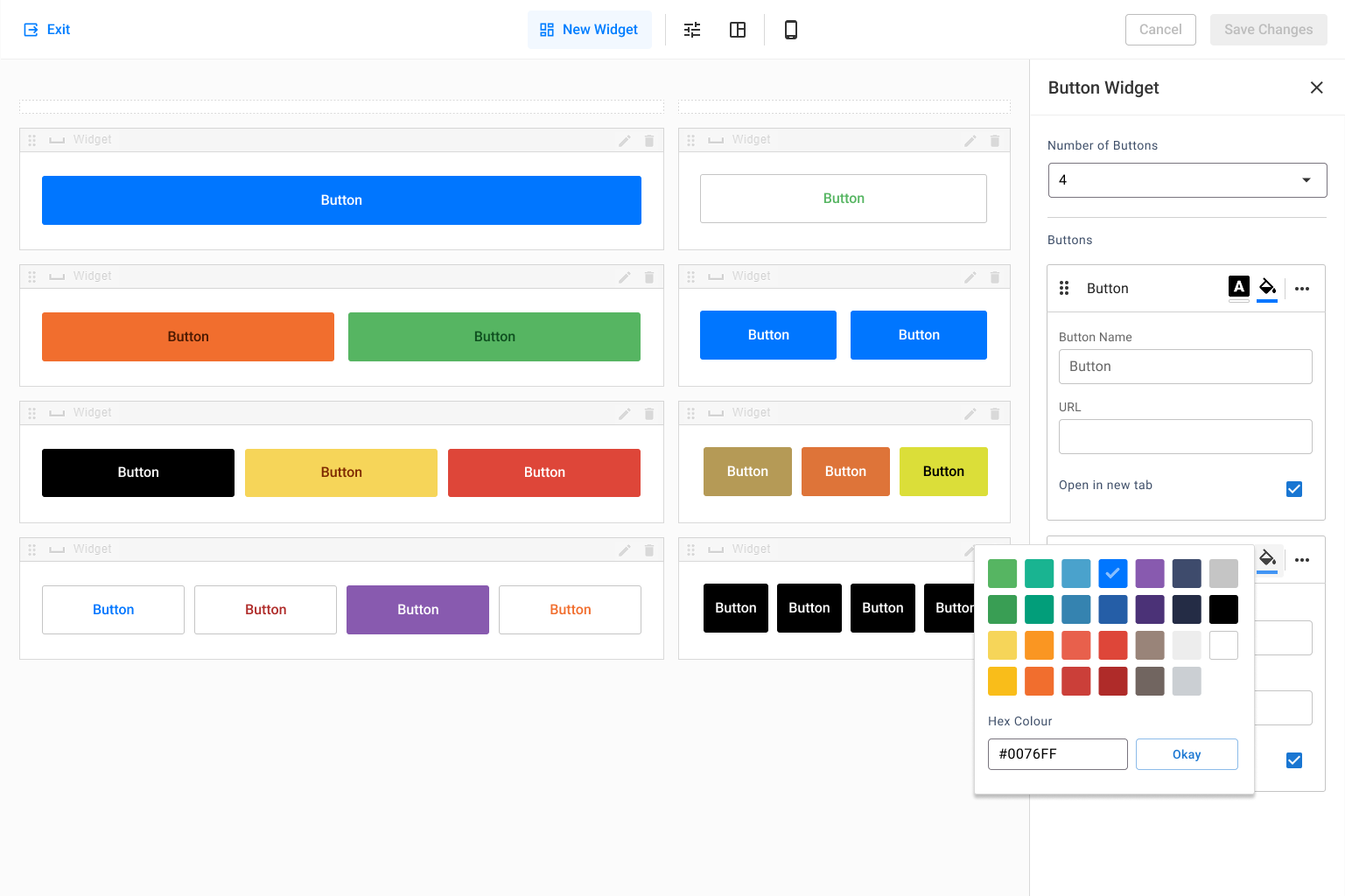 Page Builder editing surface — enabling non-technical users to compose structured, system-defined pages using standardized widgets.